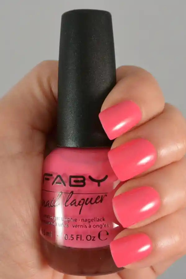 Bright fuchsia pink nail polish from the Faby Classic collection. Hold my hand is an intense colour with a cream finish that breaks the monotony and invites you to live life with joy.